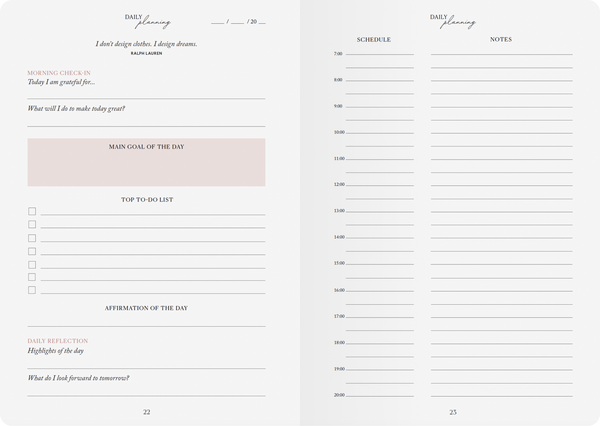 Note your main goals and tasks, schedule your time down to the last detail, and reflect on what brought you joy.