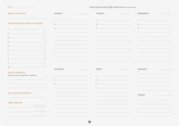 → Flexible planning system for those who don’t plan daily––it combines everything you need to unleash your full potential, have a fulfilling week, and maximize your well-being.