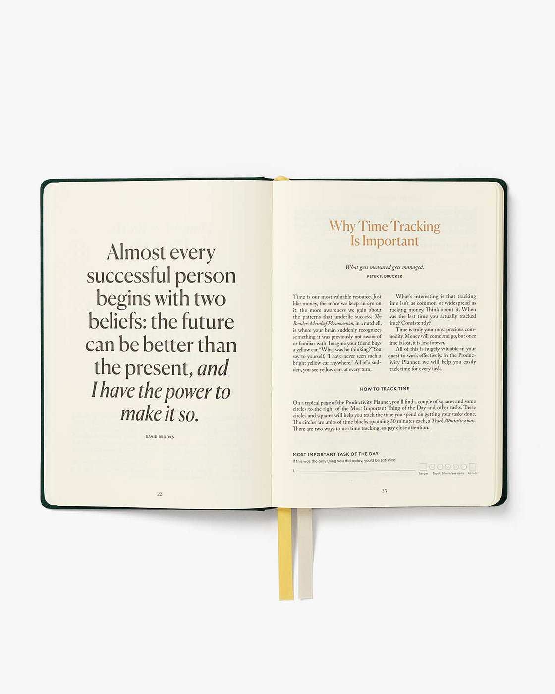 → We’ve done the hard work of compiling productivity hacks used by successful people throughout history into this simple, guided planner.