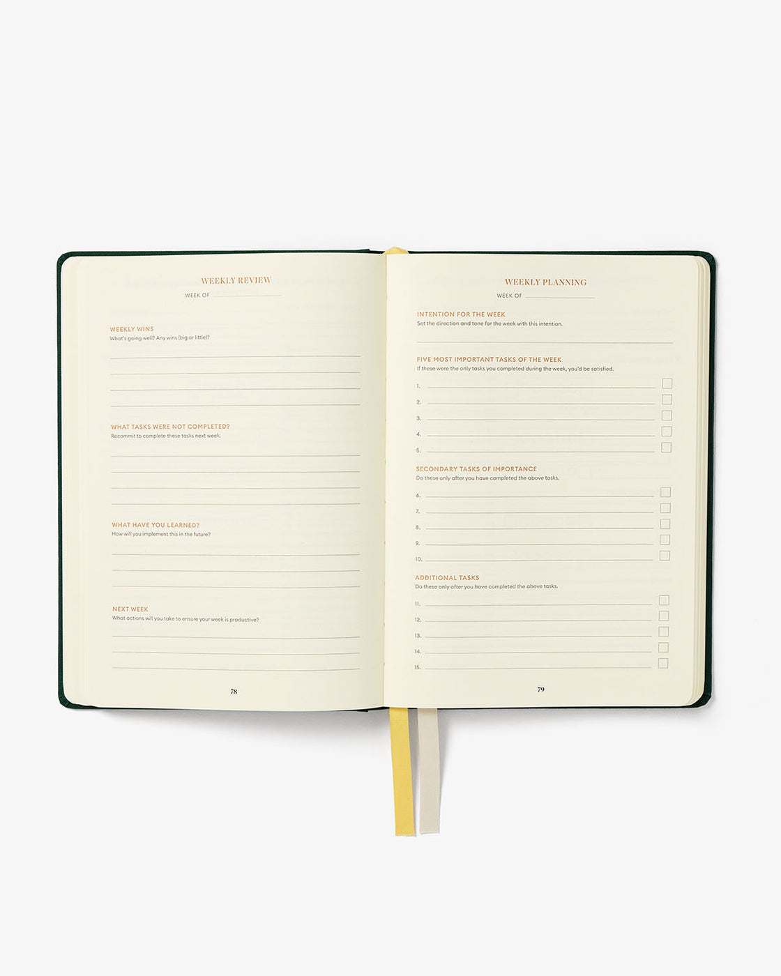 → The Productivity Planner uses industry-leading cotton thread for the sew binding, removing polyester (synthetic, plastic) stitching commonly used in book production.