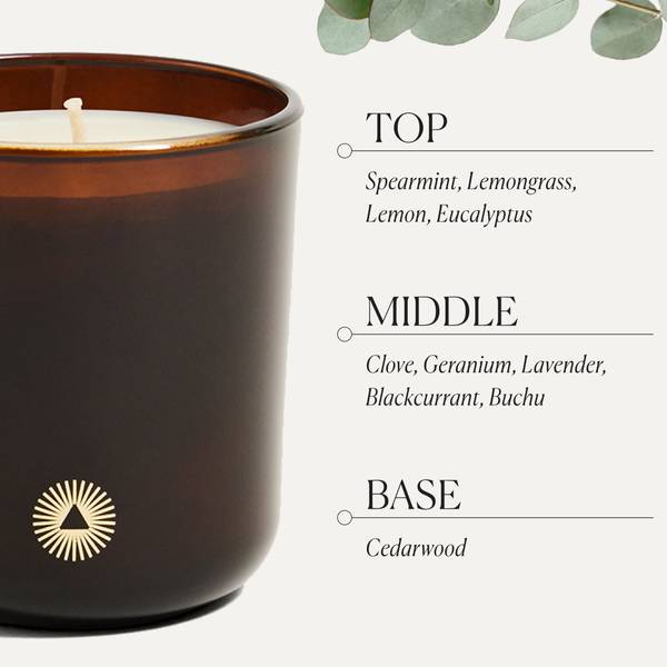 Featuring 100% natural fragrances and naturally derived soy rapeseed wax, this candle features three cohesive scent notes: Spearmint, lemongrass, lemon and eucalyptus across the top. Buchu, clove, geranium, lavender and blackcurrant throughout the middle, and a cedarwood base for grounding.