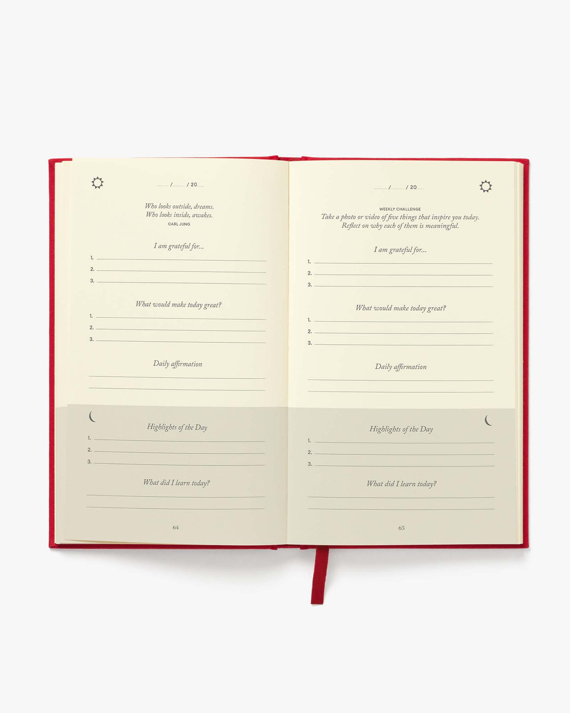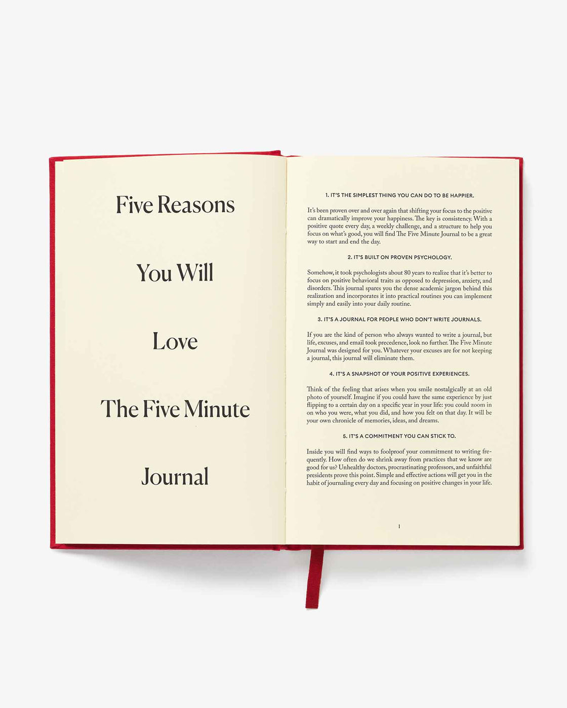 → With an inspiring daily quote, a weekly challenge, and a guided structure, you will find The Five Minute Journal the simplest thing you can do to be happier.