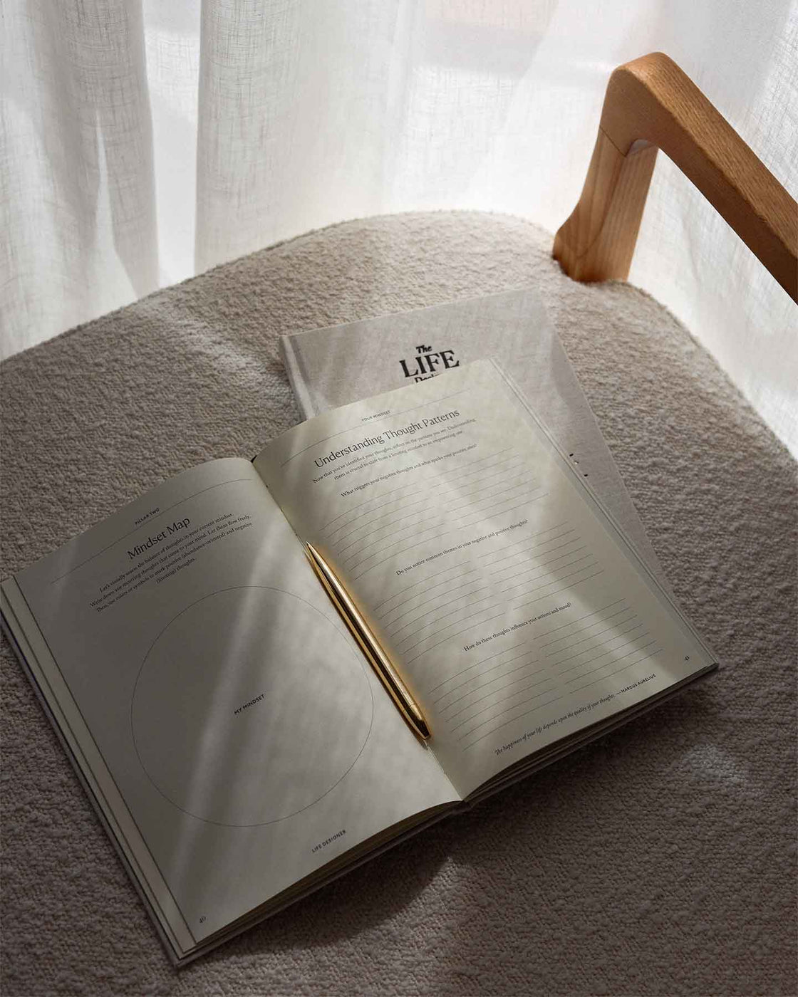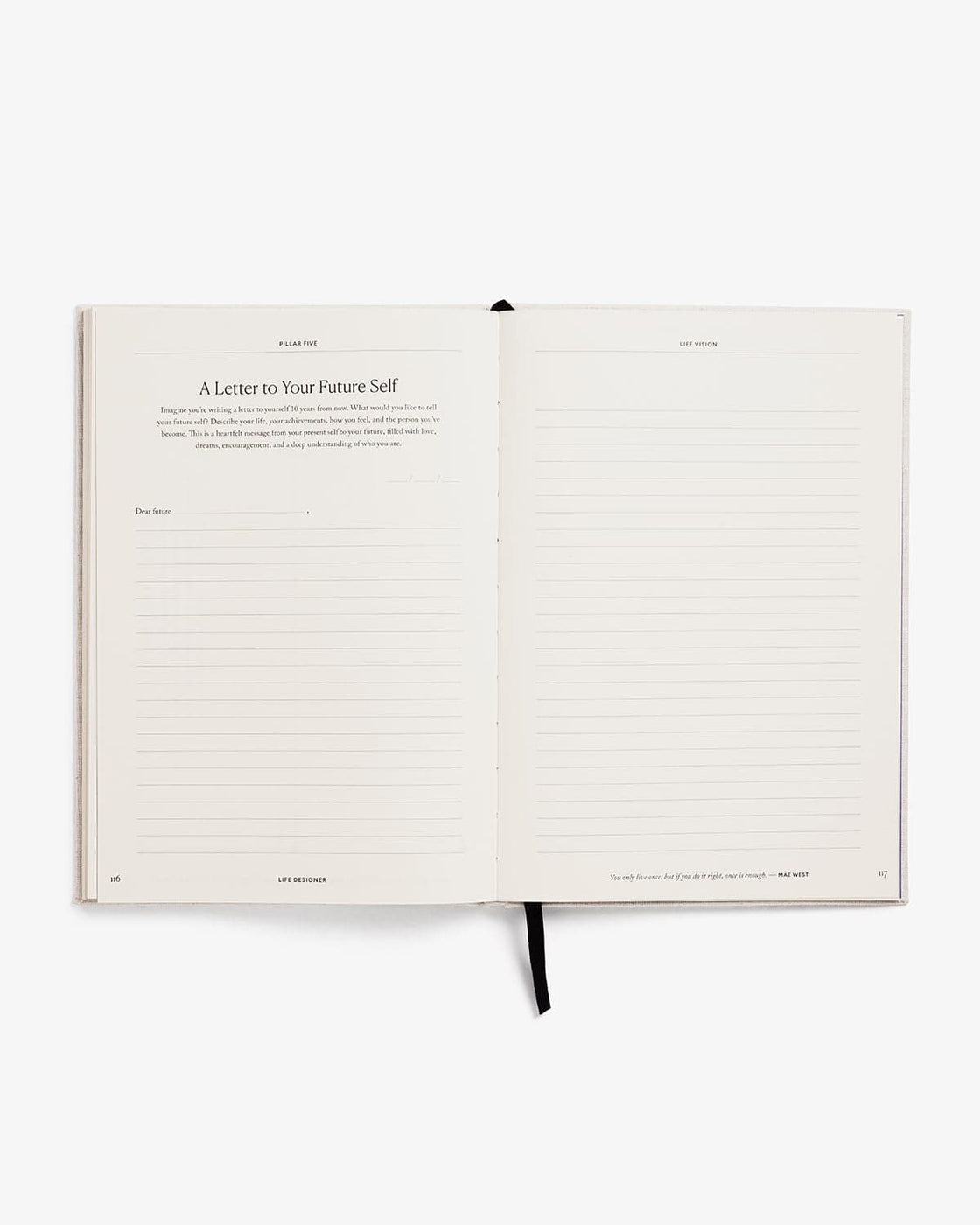 The Life Designer Journal is a deep-reflection journal that helps you create a long-term vision for your life over 10 years. It focuses on reflection rather than planning, helping you uncover your true desires, shift your limiting beliefs, and inspire you to dream big.