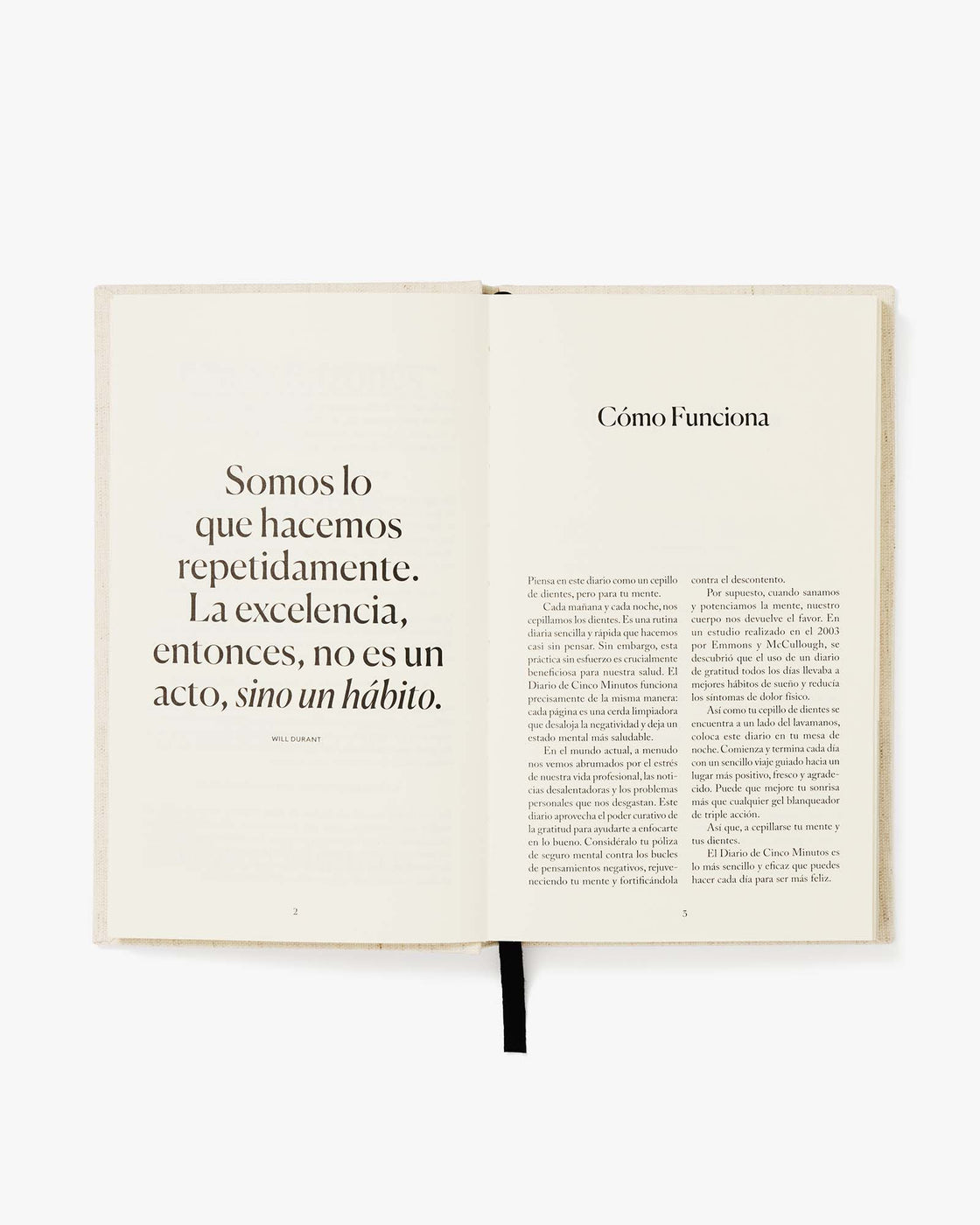 → With an inspiring daily quote, a weekly challenge, and a guided structure, you will find The Five Minute Journal the simplest thing you can do to be happier.
