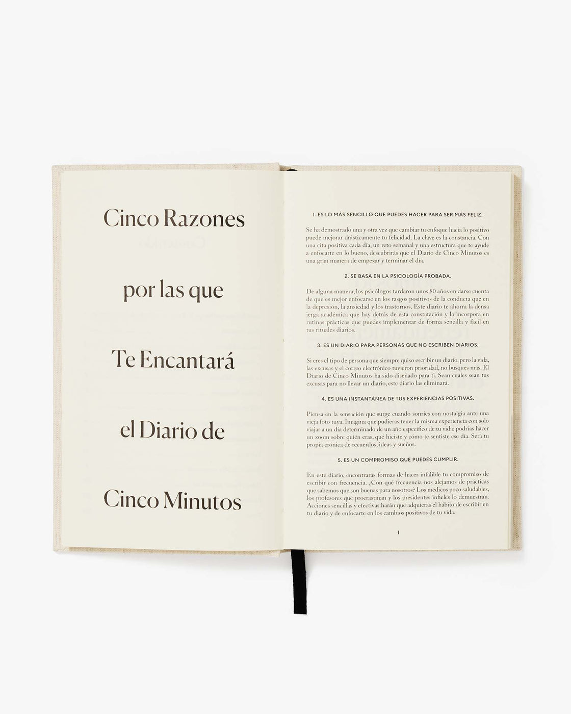 → The Five Minute Journal is printed on recycled and FSC certified paper and is bound in 100% natural fabric.
